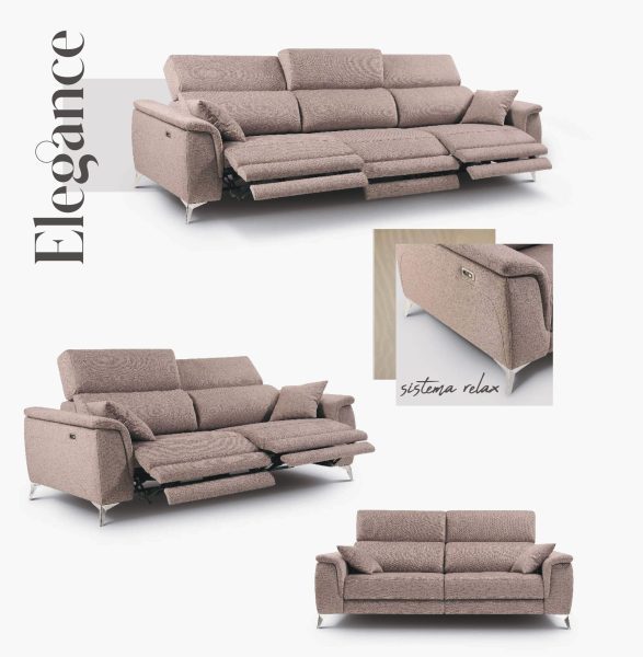 El sofá Elegance personifica su nombre al combinar diseño sofisticado con un confort excepcional. Este modelo, con líneas suaves y acabados de primera calidad, se adapta perfectamente a cualquier hogar que busque añadir un toque de distinción y estilo. Diseñado para ofrecer comodidad en cada detalle, Elegance cuenta con respaldos reclinables y asientos ergonómicos que se ajustan a tus necesidades. Su chaise longue y sistema relax integrado aseguran momentos de descanso inigualables. Fabricado con materiales de alta durabilidad, es la opción ideal para quienes valoran la calidad y el diseño funcional. Elegance transforma tu salón en un espacio lleno de confort y belleza.