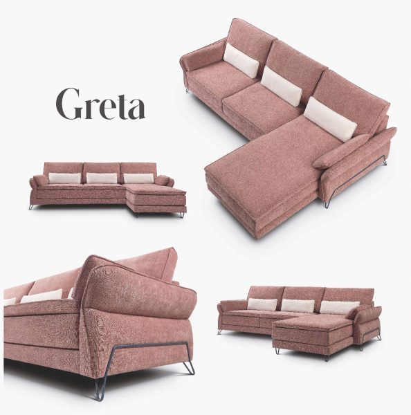 Greta es el sofá perfecto para quienes buscan combinar diseño contemporáneo y máxima comodidad. Sus líneas suaves y patas metálicas aportan un toque de modernidad, mientras que sus cojines y respaldos ergonómicos te invitan a disfrutar de momentos únicos de relajación. Ideal para transformar cualquier espacio en un ambiente cálido y sofisticado, Greta no solo es un sofá, es una declaración de estilo que convierte tu salón en el lugar donde siempre quieres estar.