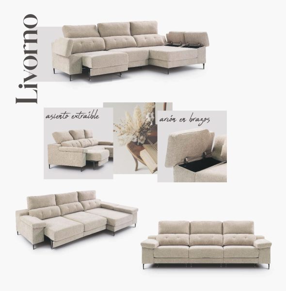 El sofá Livorno es la solución perfecta para quienes buscan confort y funcionalidad en un solo diseño. Con asientos extraíbles que se ajustan a tu comodidad y prácticos brazos con arcón para mantener todo en orden, este sofá te ofrece mucho más que un lugar donde sentarte. Su estilo contemporáneo y materiales de alta calidad lo convierten en el aliado ideal para el ritmo de tu día a día. Livorno es espacio, diseño y confort, todo en uno.