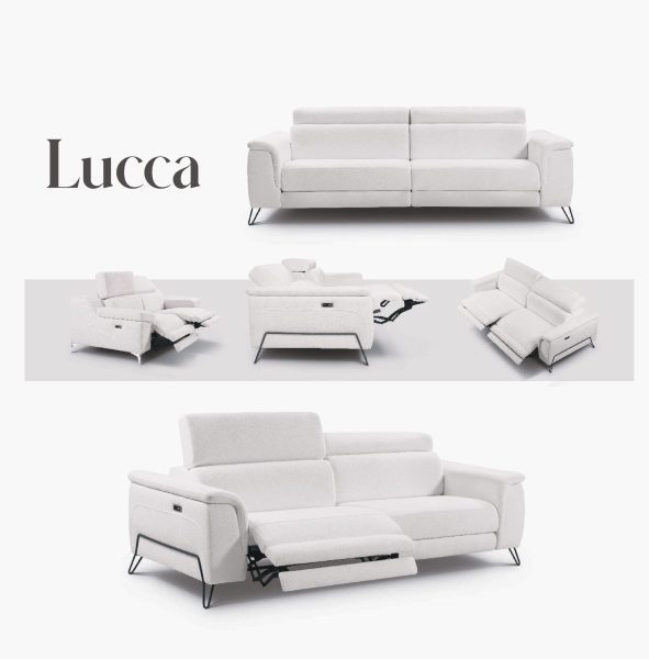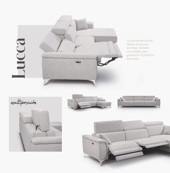 El sofá Lucca destaca por su diseño contemporáneo y su versatilidad pensada para el confort diario. Sus líneas minimalistas y patas metálicas estilizadas le confieren un aspecto ligero y moderno, ideal para cualquier ambiente sofisticado. Equipado con un sistema relax motorizado, el Lucca permite ajustar respaldo y reposapiés para adaptarse a tus momentos de descanso. Los detalles en su diseño, como el acolchado ergonómico y los reposacabezas ajustables, garantizan comodidad absoluta. Fabricado con materiales de alta calidad, combina resistencia y estilo, convirtiéndolo en la opción perfecta para quienes valoran tanto la funcionalidad como la estética. Lucca redefine la elegancia en tu hogar.