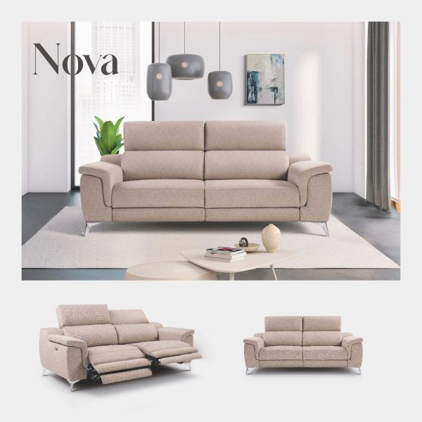 El sofá Nova combina un diseño moderno y sofisticado con una comodidad que se adapta a tu estilo de vida. Sus líneas limpias y elegantes se integran a la perfección en cualquier espacio, mientras que su sistema de asientos reclinables proporciona un confort excepcional para tus momentos de relax. Fabricado con materiales de alta calidad, el Nova destaca por su durabilidad y resistencia al uso diario, asegurando que cada detalle ha sido pensado para ofrecerte una experiencia única. Ideal para hogares contemporáneos, el sofá Nova es la elección perfecta para quienes buscan funcionalidad sin renunciar al estilo.