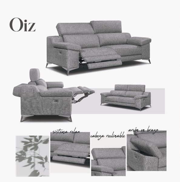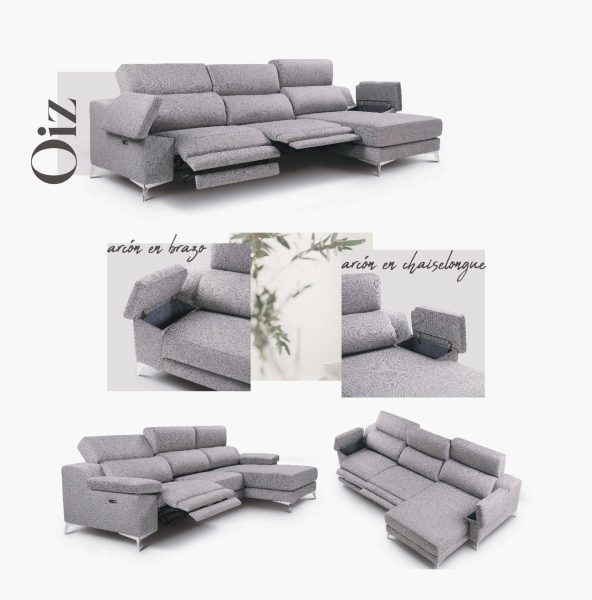 El sofá Oiz es la combinación perfecta entre diseño contemporáneo y soluciones prácticas. Con un estilo elegante y detalles sofisticados, este modelo añade un toque de modernidad a cualquier salón. Incluye un sistema relax motorizado que ajusta respaldo y reposapiés para una experiencia de descanso personalizada. Los brazos y la chaise longue cuentan con prácticos arcónes de almacenamiento, ideales para optimizar el espacio en tu hogar. Fabricado con materiales de alta calidad y un diseño ergonómico, el sofá Oiz ofrece comodidad, estilo y funcionalidad en una sola pieza, transformando tu sala en un refugio de bienestar y organización.